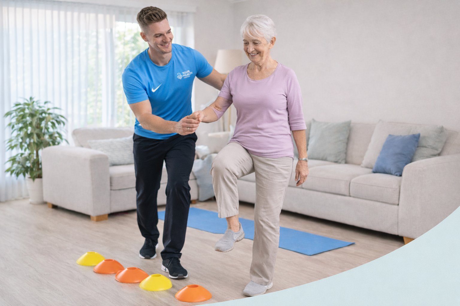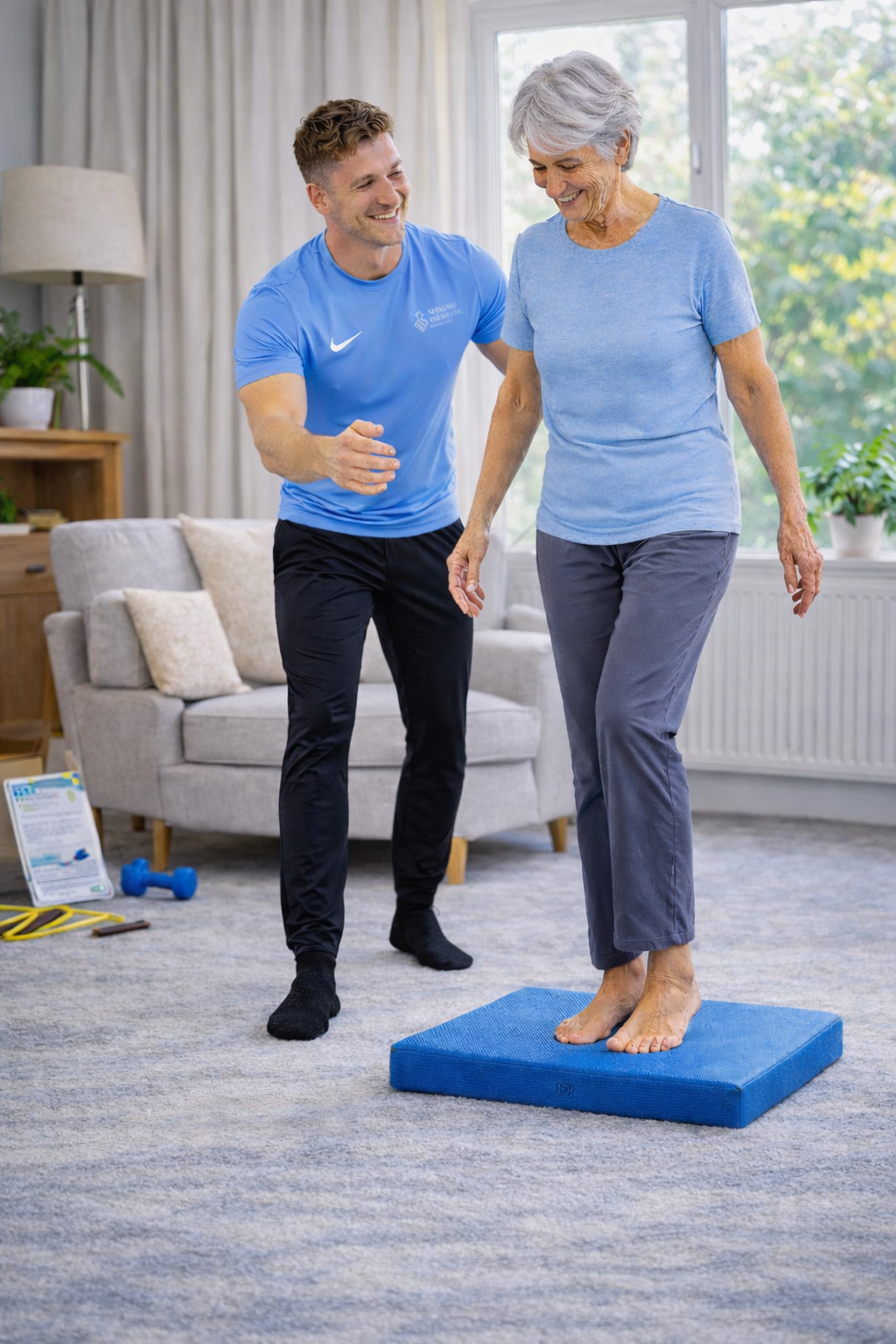 Through a referral pathway from Active Now, Rymma began receiving six in-home sessions led by Cameron, our specialist Postural Stability Instructor. The programme included personalised exercises, a resistance band, and an exercise DVD to help her stay active between sessions.